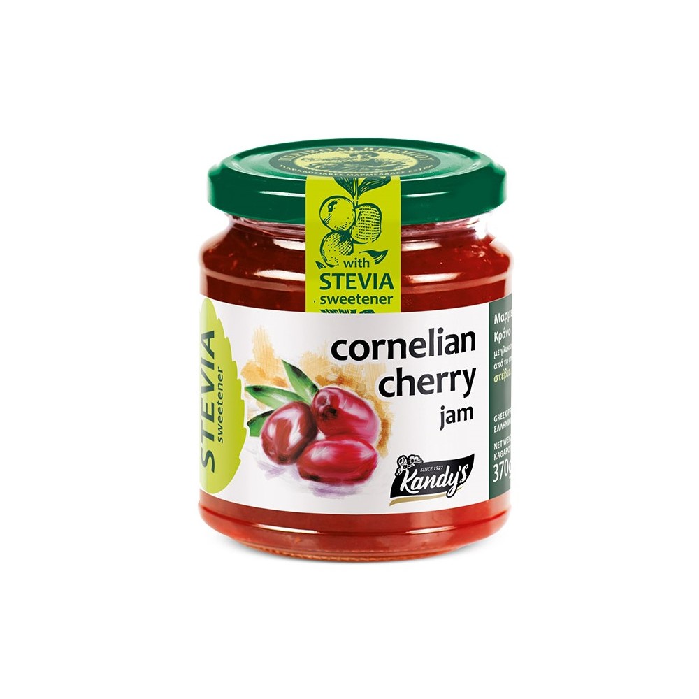 Extra jams with stevia are produced after a very strict selection of excellent quality Greek fruits. Our jams are extra because the content of fruits inside the jam is higher than 55%, no sugar included and of course, preservatives are not included. Extra jam cornelian cherry with stevia contents more than 55% of Greek fruits and no sugar at all.