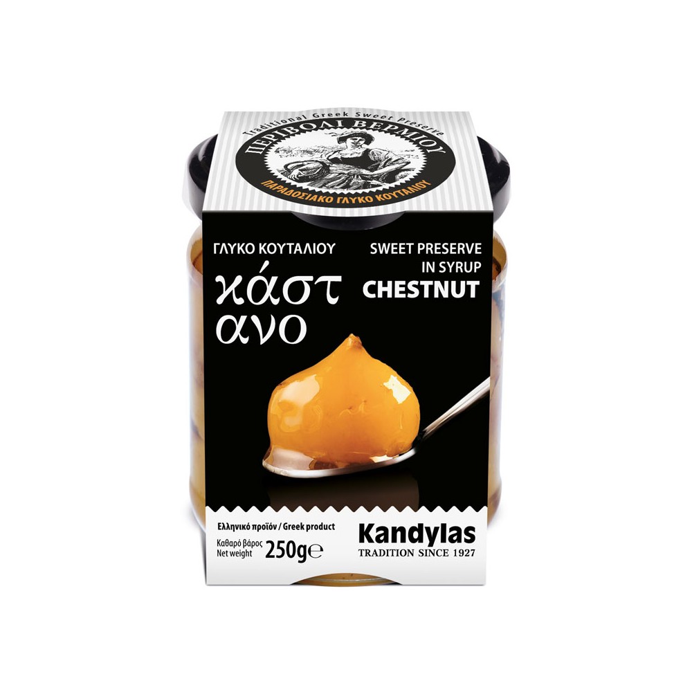 - Sweet Preserve Chestnut 180gThe huge variety of Greek fruits and nuts, makes the variety of KANDYLAS’ sweet dry...- Sweet Preserve Cocktail 180gThe huge variety of Greek fruits and nuts, makes the variety of KANDYLAS’ sweet dry...